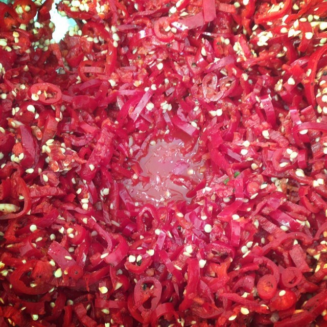 For me the fermented pepper pastes are by far the most interesting technique in the book. There are four different recipes covering sweet, charred, sambal and chipotle pastes, and although the recipes are very different they follow the same basic steps:
