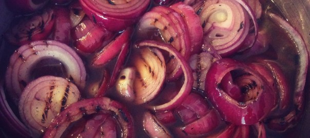 – 1 red onion per 5 peppers, sliced into thick rounds